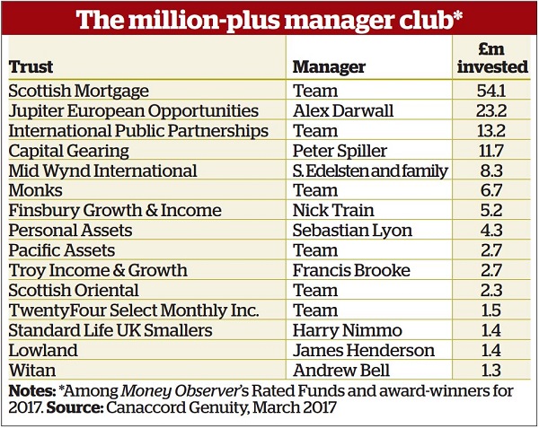 Canaccord Genuity calculates that a total of 61 chairmen/directors have an investment in excess of £1 million in their trusts, while 55 managers/management teams have a personal investment in excess of £1 million. And as the report's authors point out: