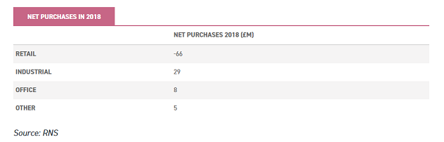 The industrial sector was by far the most bought with £29 million in net purchases. This sector is seen as the most resilient to the changes in shopping patterns and a potential beneficiary through being used for storage, logistics and distribution.